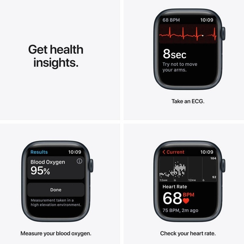 En cuanto a la resistencia, el Apple Watch 7 está fabricado con un cristal más grueso, lo que lo hace más resistente a las caídas, y contiene un certificado IP6X. En cuanto al rendimiento, cuenta con un chip Apple S7 de doble núcleo. En la Tienda Online encontrarás el Apple Watch Series 7 de 45mm y 41mm.