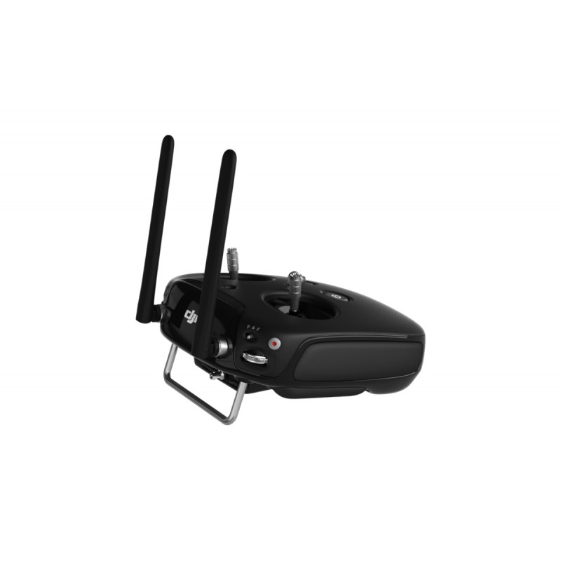 O controlador remoto integra downlink de vídeo e o controlo do drone num único sistema. O sistema combinado opera a 2,4 GHz com um alcance máximo de transmissão de sinal de 5 km.