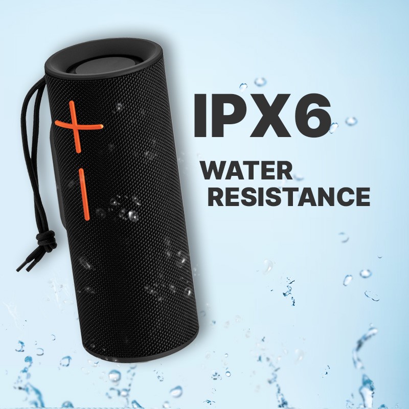 Esta coluna de som bluetooth é perfeita para levar para qualquer lugar como uma praia, piscina, jardim entre outros espaços dado que é resistente a salpicos e chuva leve.