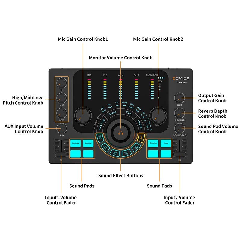 Aquesta interfície d'àudio compta amb entrades XLR, 6.35 mm i 3.5 mm que suporta micròfons amb alimentació phantom de 48V i instruments musicals. Un senyal que estem parlant d'un equipament versàtil per captar àudio. Per la seva banda, la tecnologia CalMix™ Denoise redueix qualsevol tipus de soroll en temps real per a gravacions netes en qualsevol ambient.