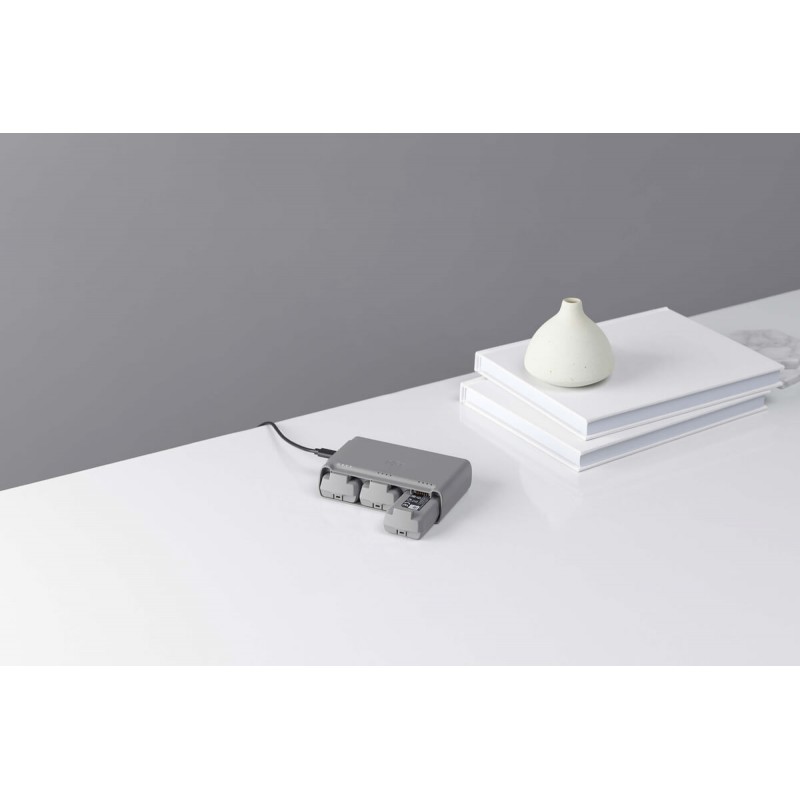 Carrega até três baterias em sequência e pode até ser usado como um powerbank para carregar dispositivos adicionais.