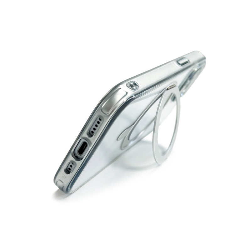 Protegeix el teu iPhone amb estil i forma personalitzada gràcies a la Funda per a iPhone amb Ring Holder. Es tracta d'una funda transparent amb ring holder magnètic i MagSafe perquè hi col·loquis una Powerbank i carreguis l'Smartphone amb seguretat.