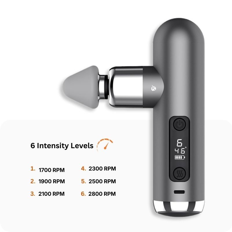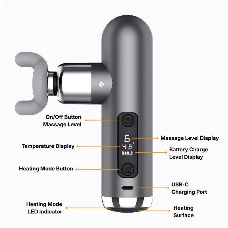 A iServices troba el millor la millor pistola de massatge amb 6 nivells de massatge, 3 capçals amovibles, 3 nivells d'escalfament i una pantalla LCD amb diverses notificacions. El carregament es fa via USB-C.