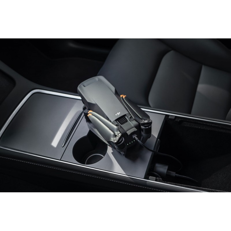 El cargador de coche DJI 65W tiene una potencia de salida estable de 65W. Cuenta con dos puertos de salida (USB-C y USB-A) y puede cargar baterías Smart Flight y un RC simultáneamente. Es compatible con los protocolos PPS y PD y puede cargar su móvil, ordenador portátil y otros dispositivos.
