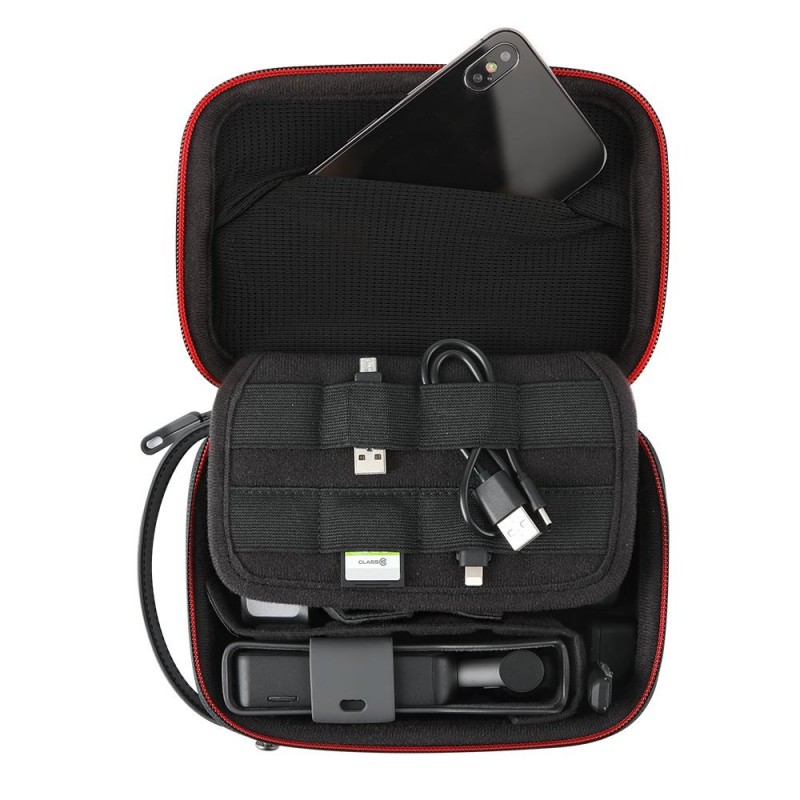 La mini maleta de transporte puede acomodar un OSMO Pocket /Pocket 2 o un OSMO Action y varios accesorios; incluye dos divisores largos y cuatro cortos plegables que ayudan a personalizar el área de almacenamiento.