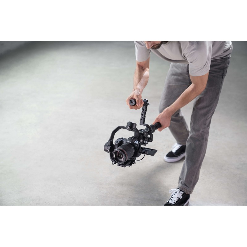 La empuñadura doble DJI R Twist Grip está equipada con puertos NATO para permitirte sostener el DJI RS 2 / DJI RSC 2 en varias configuraciones, como con ambas manos y en modo maletín.