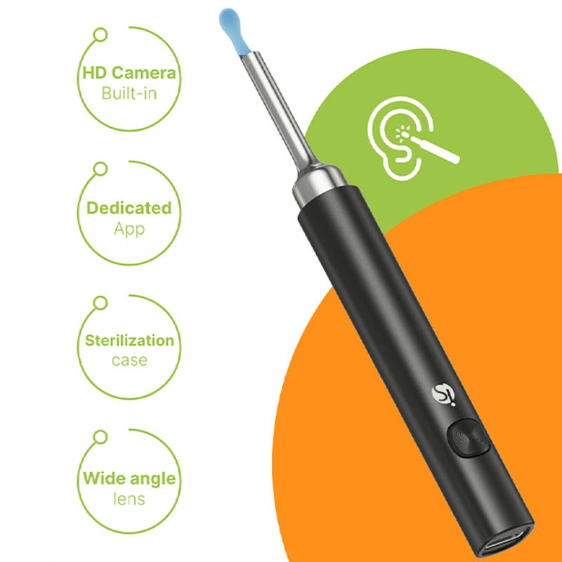 Este Hisopo Electrónico con Caja de Esterilización proporciona una visión muy cercana de tu canal auditivo gracias a la ayuda de la cámara HD y una limpieza efectiva con las puntas que eliminan la cera acumulada y otras impurezas. Siga su limpieza de oídos utilizando ISEE+, la aplicación de este bastoncillo de algodón. La conexión es sencilla y rápida con tu smartphone a través de Bluetooth.