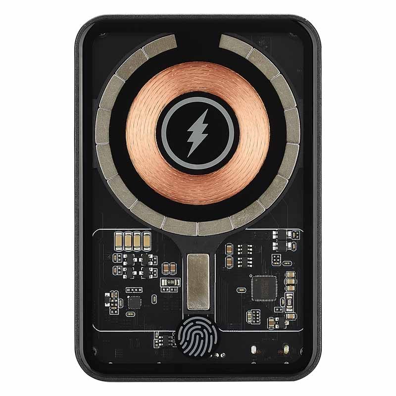 Con un diseño compacto y sencillo de usar, presentamos la Powerbank MagSafe para iPhone con activación Qi. Gracias al imán, la batería se fija a este accesorio de forma sencilla y sencilla. También es un gadget compatible con la tecnología MagSafe de Apple desde el iPhone 12 hasta los más recientes como el iPhone 15. Si tienes un iPhone antiguo y usas una funda MagSafe, simplemente toca este banco de energía y comenzará a cargarse automáticamente.